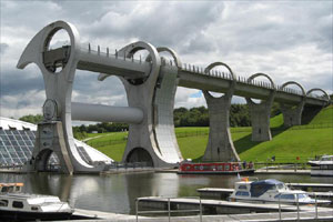 隨著科技的發(fā)展,許多技術(shù)與藝術(shù)的結(jié)合品一件件誕生。其中一個(gè)就位于英國,稱為世界十大升降機(jī)之一。佛斯與克萊德運(yùn)河動(dòng)工于1768年,1777年時(shí)她接通了西岸的蘇格蘭第一大城格拉斯哥(Glasgow)與東部佛斯灣(Firth of Forth)的港口城市格蘭茅斯(Grangemouth)。13年后,從格拉斯哥往西到克萊德灣(Firth of Clyde)的水道也完工了。于是,61公里長的佛斯與克萊德運(yùn)河成了世界上第一條連接兩個(gè)海洋的運(yùn)河航道。1818年到1822年間,51公里長的聯(lián)合運(yùn)河也建成了。聯(lián)合運(yùn)河沿著地勢平坦前行的等高線運(yùn)河。然而,兩條運(yùn)河在福爾柯克匯合之前,還得克服35米的高度落差。當(dāng)年工程師們用了11個(gè)水閘來解決這問題。