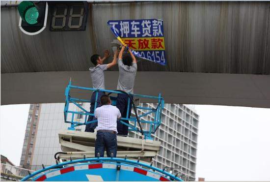 目測(cè)人行道過(guò)街天橋橋身垂直距離地面8米,100cm*80cm見方的藍(lán)色 “牛皮鮮”上印著車貸廣告。關(guān)注到這些廣告的市民都在猜:“這么高的天橋,牛皮蘚是么樣貼上去的?”據(jù)青山城管“三亂”整治專班負(fù)責(zé)人介紹,友誼大道兩座天橋東南西北四個(gè)方向的紅綠燈旁均被貼上了同一內(nèi)容的“牛皮癬”,應(yīng)該是前天晚上(11日)干的,估計(jì)有兩種方式張貼:一是借助比較高的車身站立進(jìn)行,這需要大型車輛配合;二是腰系安全帶從橋面懸垂下去,這很簡(jiǎn)單,但是很危險(xiǎn)。不管是怎么貼上去的,只要發(fā)現(xiàn)一處,就清理一處,這點(diǎn)事難不倒我們。有困難找龍豪升降機(jī),除了及時(shí)清理外,還將對(duì)當(dāng)事人展開調(diào)查,依法進(jìn)行處置。
