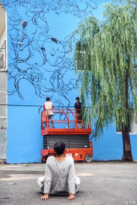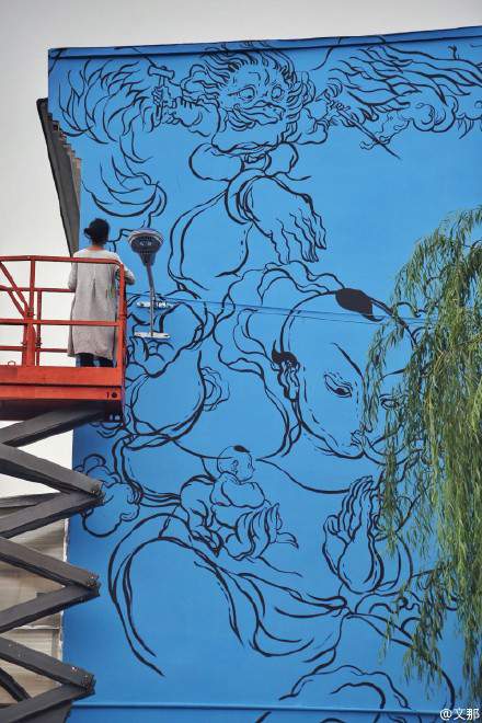 第一次看到用戶在自己家生產(chǎn)的全自行液壓升降機(jī)上畫壁畫有點(diǎn)小激動(dòng),全電瓶行走和升降,沒(méi)有支腿,能更好的貼服墻面,給藝術(shù)類學(xué)生提供了很大的方便。