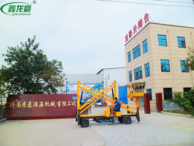 自行曲(折)臂式升降機升高時候是曲折狀態(tài)的,升降平臺的結構采用了機電液一體化、可靠性設計和計算機輔助設計等技術,是一種全液壓驅動、自行式專用底盤。突破了以往國內高空作業(yè)升降機只能采用汽車或起重機底盤改裝設計的限制。自行曲(折0臂升降機,曲臂式往往體積較小,帶載行駛、作業(yè)穩(wěn)定性好。底盤結構突破了傳統(tǒng)的設計理論和方法,通過優(yōu)化上車平臺總體布局與載荷分布,減少了重心偏移。采用獨特的大角度后仰式鉸點結構,合理設置多種配重模塊,有效地平衡了工作力矩。采用H型變截面復合箱梁剮性車架和高負荷橡膠輪胎,增加了底盤整體剛度,保證了整機行駛、作業(yè)過程的穩(wěn)定性實現(xiàn)了高空作業(yè)升降機帶載行駛的功能。通過大臂前端托架可以快速安裝舉升裝置或載人平臺,實現(xiàn)物料舉升、起重吊裝和載人高空作業(yè)等功能同時為擴展作業(yè)裝置以及各種工作裝置的快速切換提供了接口。設計的三維旋轉托舉裝置,既能夠自動保持被舉升物料的姿態(tài),又可以實現(xiàn)舉升物料在空間內任意高度、任意位置和任意方向的調整要求,速度控制精確靈敏,微動性能好,滿足了大型洞庫內高空作業(yè)與通風管道安裝的要求。