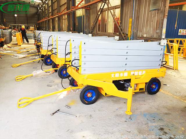 移動(dòng)剪叉式升降平臺(tái)主要技術(shù)特點(diǎn):臺(tái)面鋼板折彎、底架及剪叉結(jié)構(gòu)山鋼定做高強(qiáng)度矩形管材; 標(biāo)準(zhǔn)冷彎槽做道軌,使用尼龍滑塊做導(dǎo)軌輪,接觸面大,升降平穩(wěn),晃動(dòng)小;液壓油缸 內(nèi)置防爆閥(防止油管斷裂,平臺(tái)失速下降),采用進(jìn)口密封圈,經(jīng)久耐用,不泄露;雙層鋼網(wǎng)高壓油管;升降機(jī)專用液壓泵站,加裝應(yīng)急下降閥,平臺(tái)斷電可手動(dòng)控制 下降,內(nèi)置溢流閥,可防止上行運(yùn)動(dòng)時(shí)系統(tǒng)壓力過(guò)高,起到超載保護(hù)功能;充氣橡膠輪胎; 電路電器、接觸器羅列連接,加裝熱過(guò)載保護(hù),缺相保護(hù)等安全保護(hù)功能;電動(dòng)上、下電動(dòng)控制,控制按鈕盒加裝急停按鈕,以保障財(cái)產(chǎn)及人身安全,各操作部分使用24V安全控制電壓;軸銷圓鋼配做,調(diào)質(zhì)處理;拋丸、噴砂 除銹處理,除去鋼結(jié)構(gòu)構(gòu)件表面的銹蝕及焊接飛濺,能使鋼構(gòu)件表面產(chǎn)生一定程度的凹凸不平的效果,增大粉末的附著力;使用靜電粉末噴涂;涂層外觀質(zhì)量?jī)?yōu)異,附著力及機(jī)械強(qiáng)度強(qiáng),色澤亮度高,經(jīng)久不褪色。